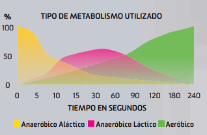 Pasados esos 10 segundos, se empiezan a utilizar las reservas de glucosa intracelulares que se transforman en energía (ATP) mediante unas reacciones anaeróbicas, sin oxígeno, ya que han de activarse muy rápido.